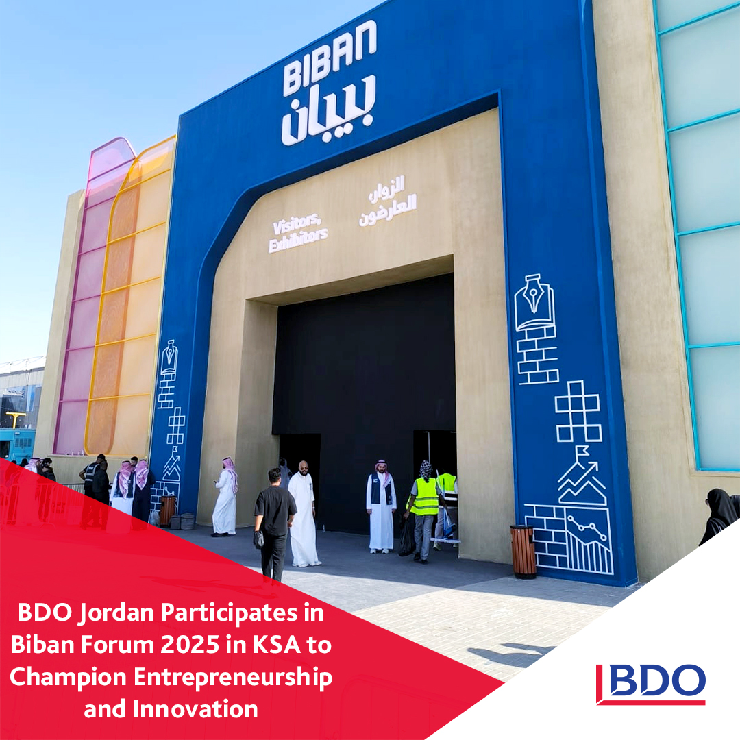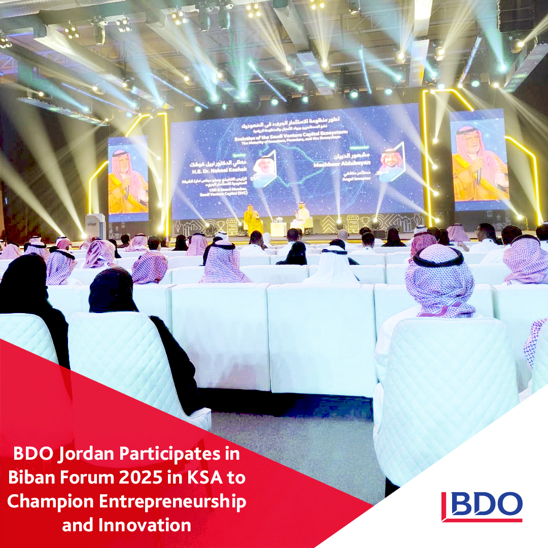BDO Jordan participated in the 11th edition of the Biban Forum, one of the region’s leading platforms dedicated to advancing entrepreneurship, innovation, and business development. The event, held in Riyadh from 5 to 8 November 2025, brought together global leaders, policymakers, and investors to shape the future of the entrepreneurial ecosystem in the region.